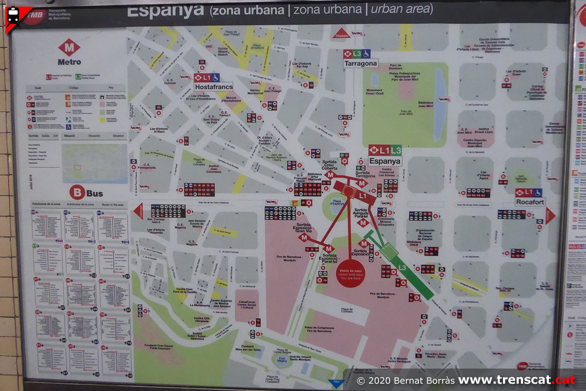 Plànol de l'estació Espanya de les línies L1 i L3 (març 2020) |