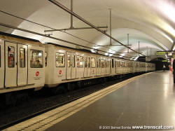 Tren procedent d'Hospital de Bellvitge arribant a Espanya (abril 2005) |