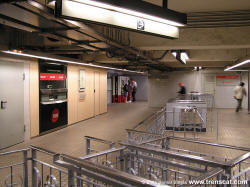 central i el vestíbul principal, on hi ha una escala mecànica de