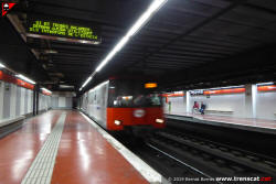 Unitat 4000 del metro de TMB entrant a Torrassa de la línia L1 procedent