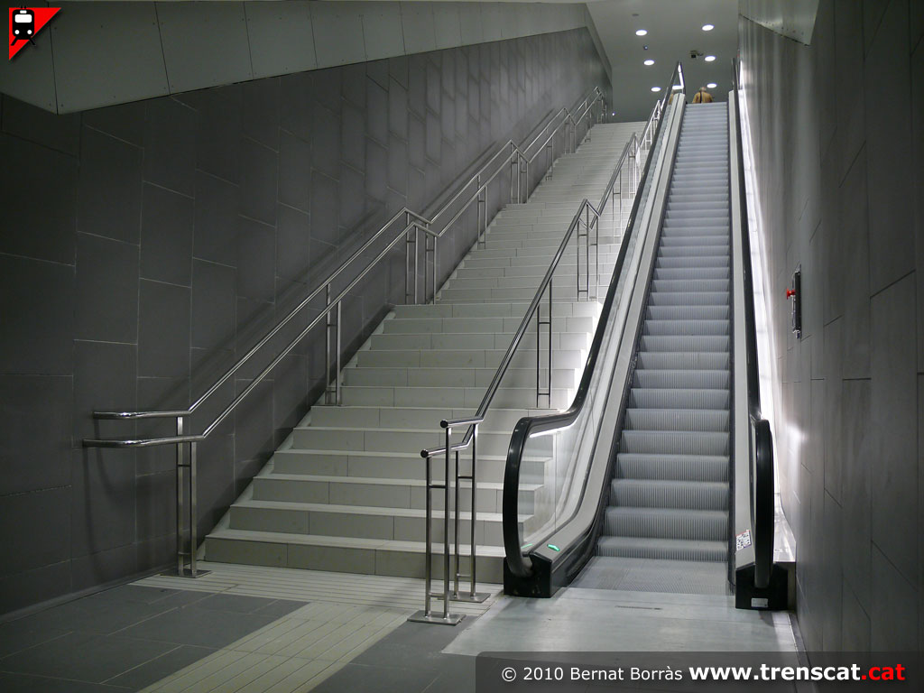 Zona ja d'accés amb bitllet, amb les escales fixes i mecànica per baixar
