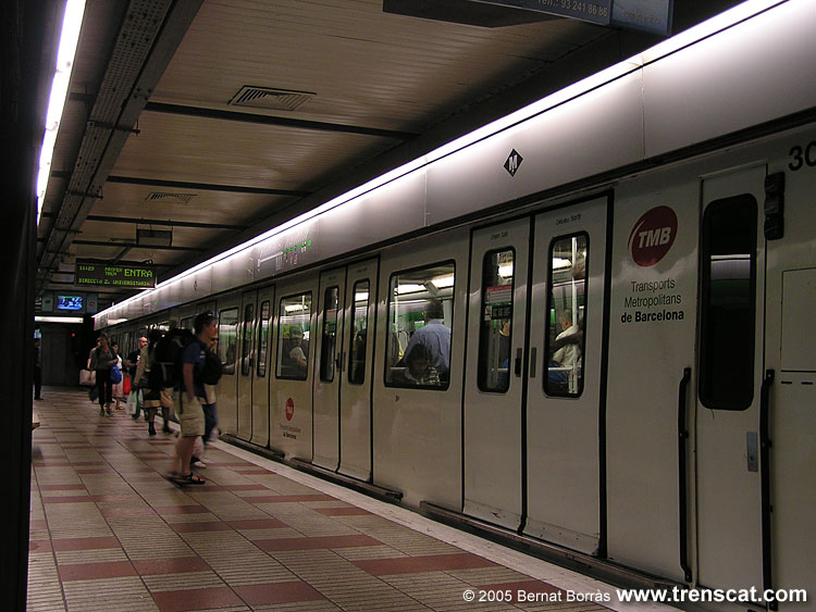 Unitat 3000 fent entrada a l'estació de Liceu (maig 2005) |
