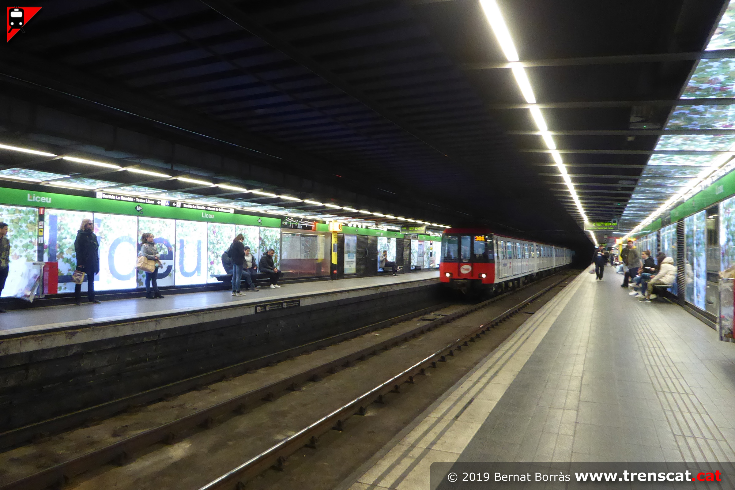 Unitat 3012 fent parada a l'estació de Liceu (novembre 2019) |