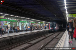 Tren sèrie 7000 baixant pel subsol de la Rambla cap a Liceu (juliol 2025) |