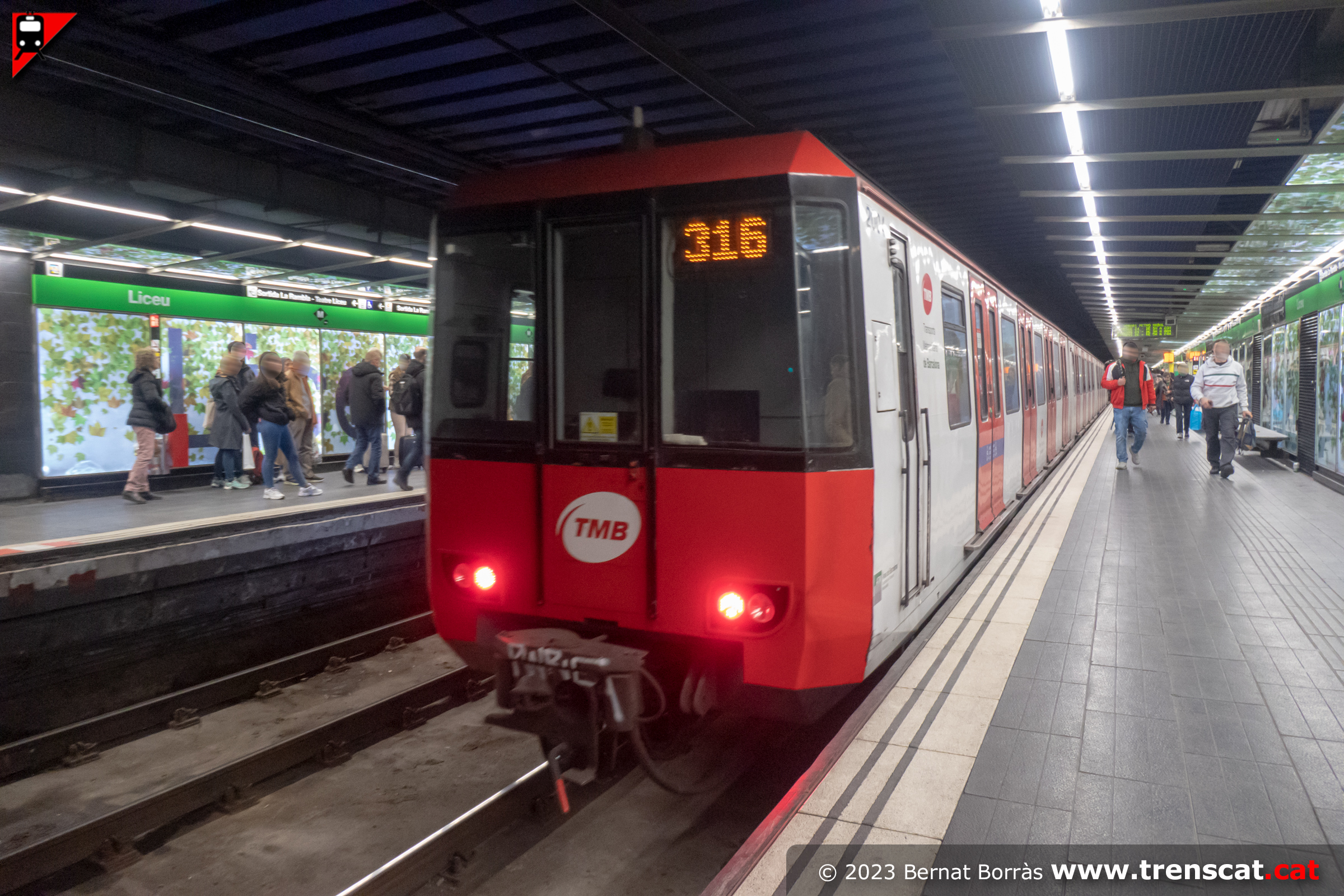 La 3028-R3307-3027+3026-3025 a Liceu (desembre 2023) |