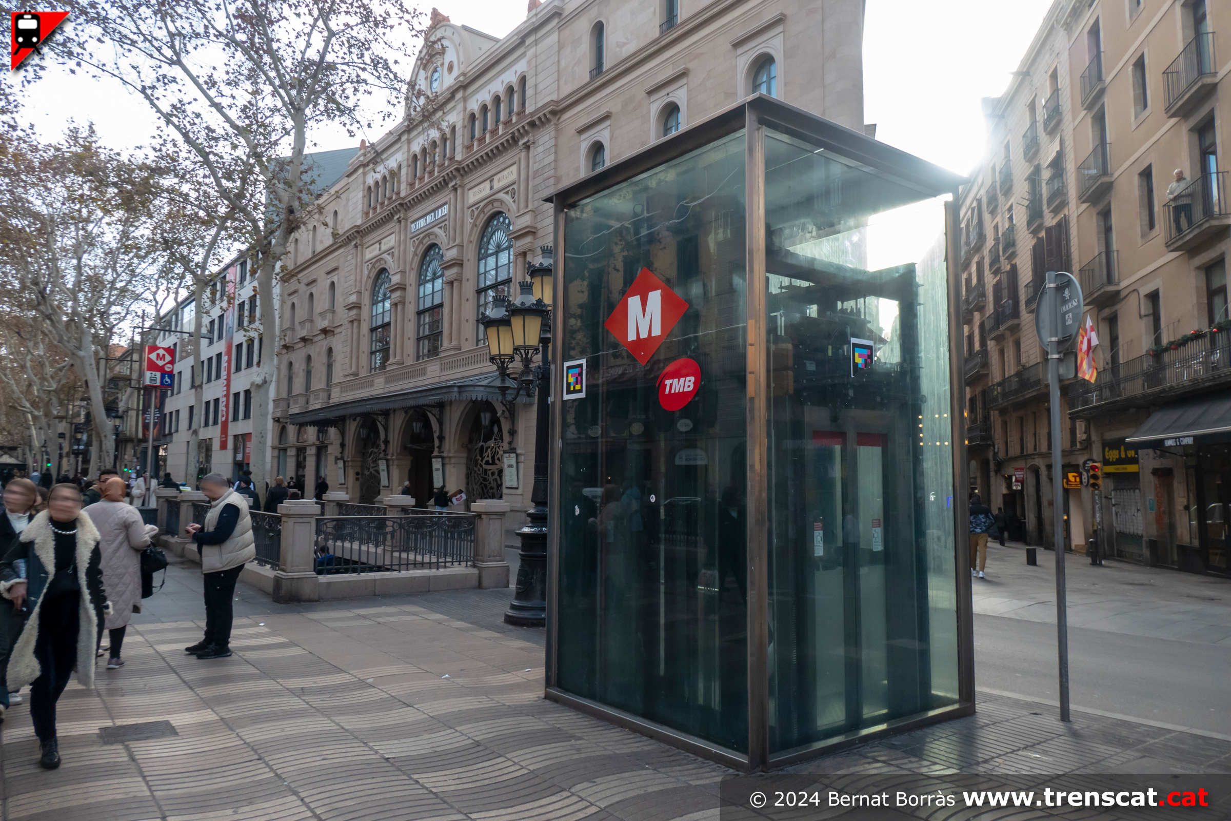 Acccés davant del teatre del Liceu, amb ascensor (gener 2024) |