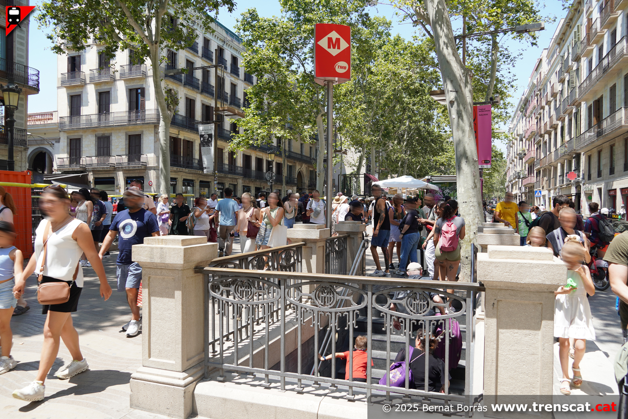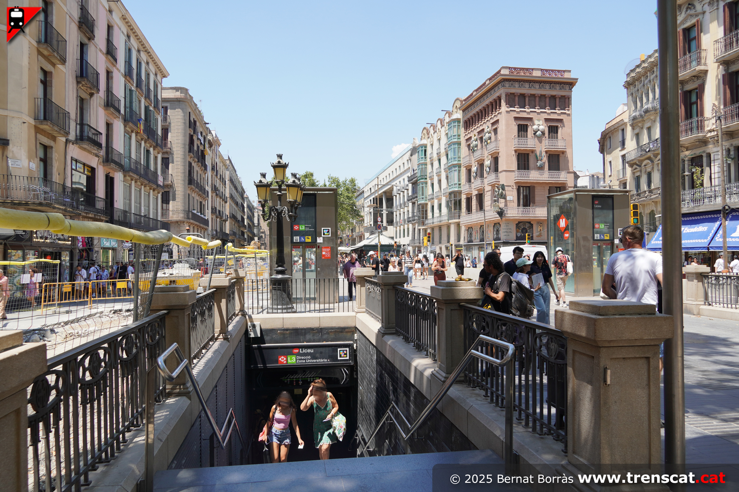 Vista general de l'estació de Liceu des del costat muntanya (juliol 2025) |