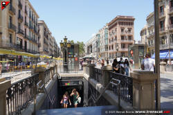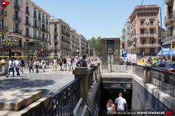 Boca d'entrada al metro Liceu des del passeig central de la Rambla