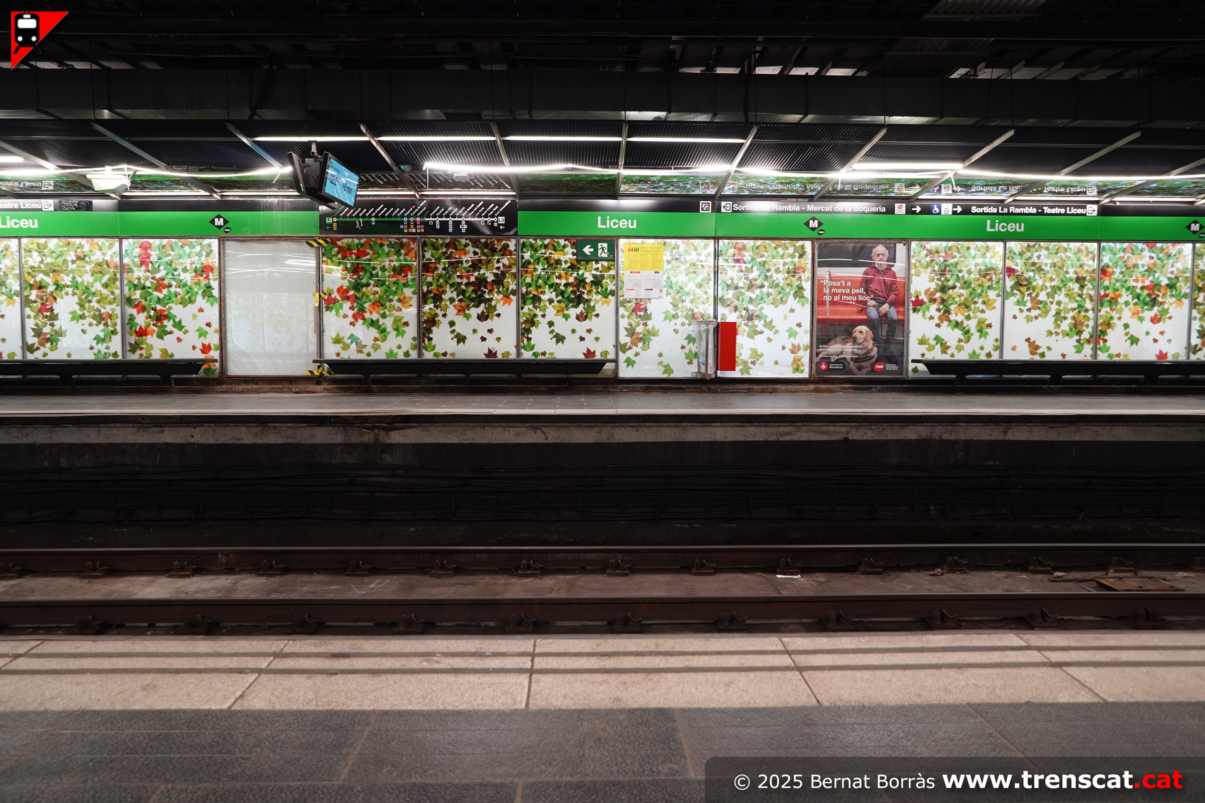 Vista de la peculiar decoració de l'estació de Liceu (juliol 2025) |