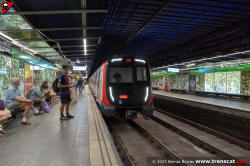 Tren de la sèrie 5000 fent parada a la via 1 de Liceu (juliol 2025) |