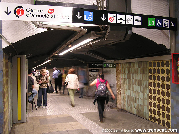 L5 i l'estació de renfe-adif; dreta, accés a les andanes de la L3 (maig 2005)