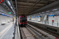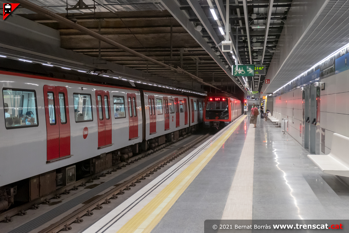 Baixant a l'andana de la via 2, on circulen els metros de la línia L5