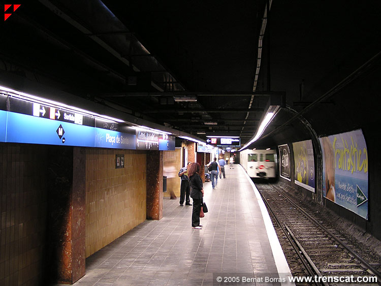 (més de 210 metres de longitud) amb l'estació Plaça de Sants de la línia