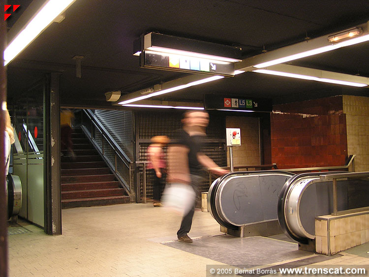 L5, amb l'escala mecànica que puja des de l'andana de la via 2 (juny 2005) |