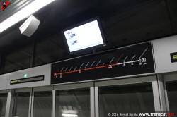Detall de la senyalètica i arquitectura de l'andana de la via 2 de