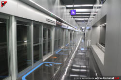 Detall de les portes d'andana i les marques a terra per deixar sortir