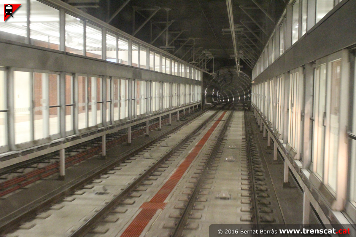 Vista del túnel cap a El Prat Estació i Zona Universitària (gener 2016) |
