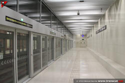 Vista general de l'andana de la via 1, amb les portes d'andana separant
