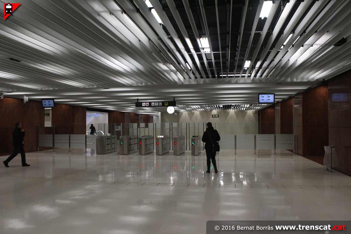 Vista de l'ampli espai de vestíbul passades les barreres tarifàries (gener 2016) |
