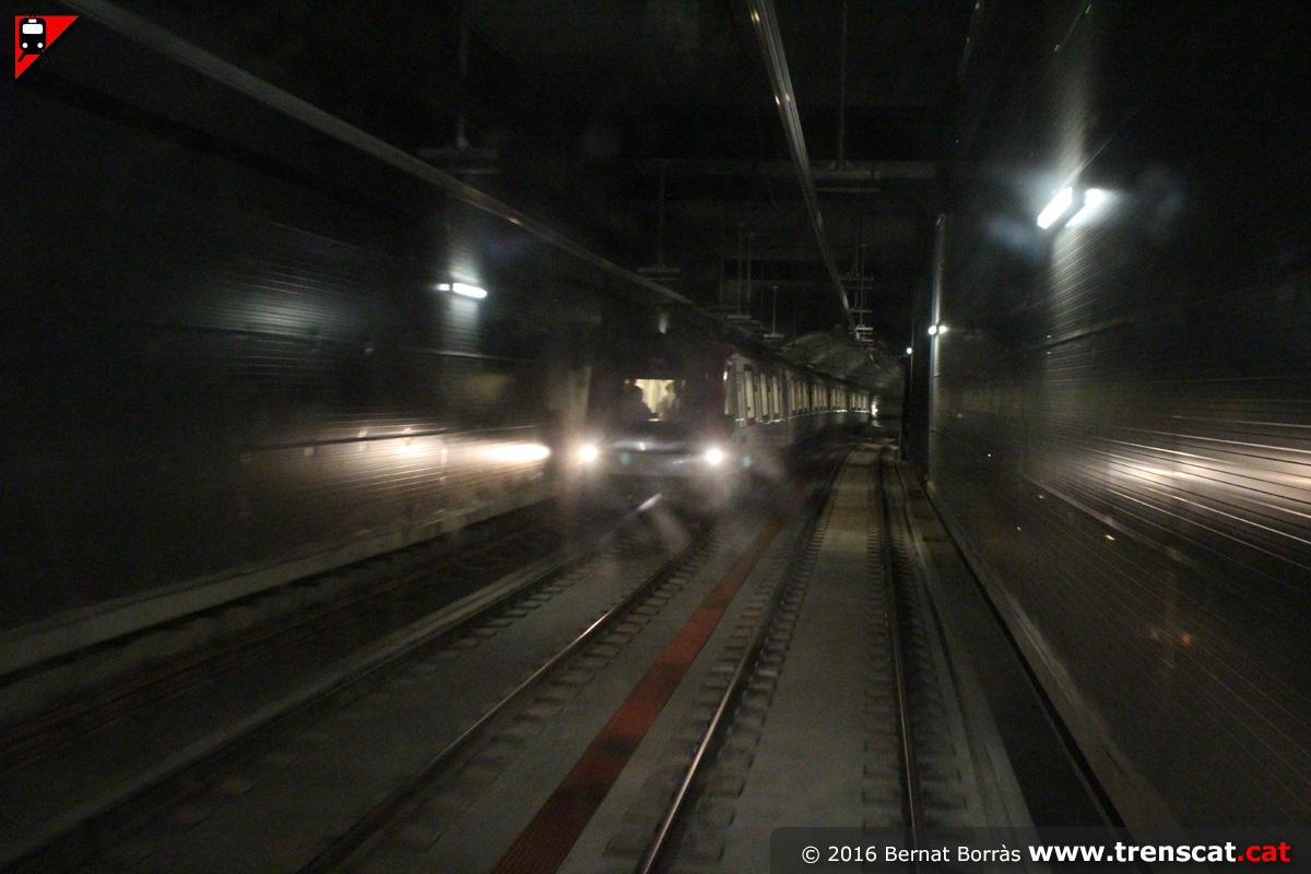 Encreuament amb un tren sèrie 9000 a la futura estació de la Ribera (gener