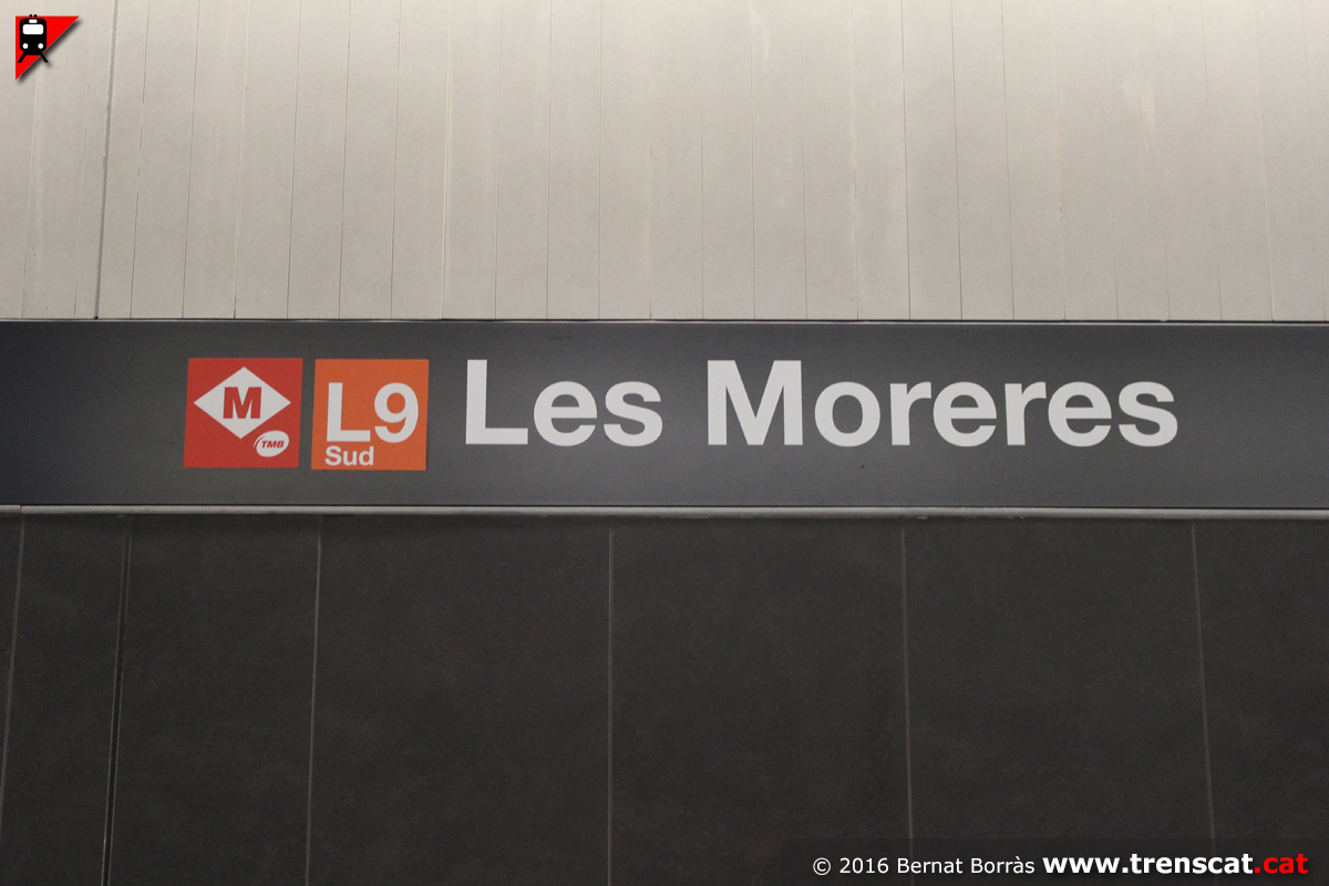 Detall de la senyalètica de l'estació Les Moreres de la L9 sud