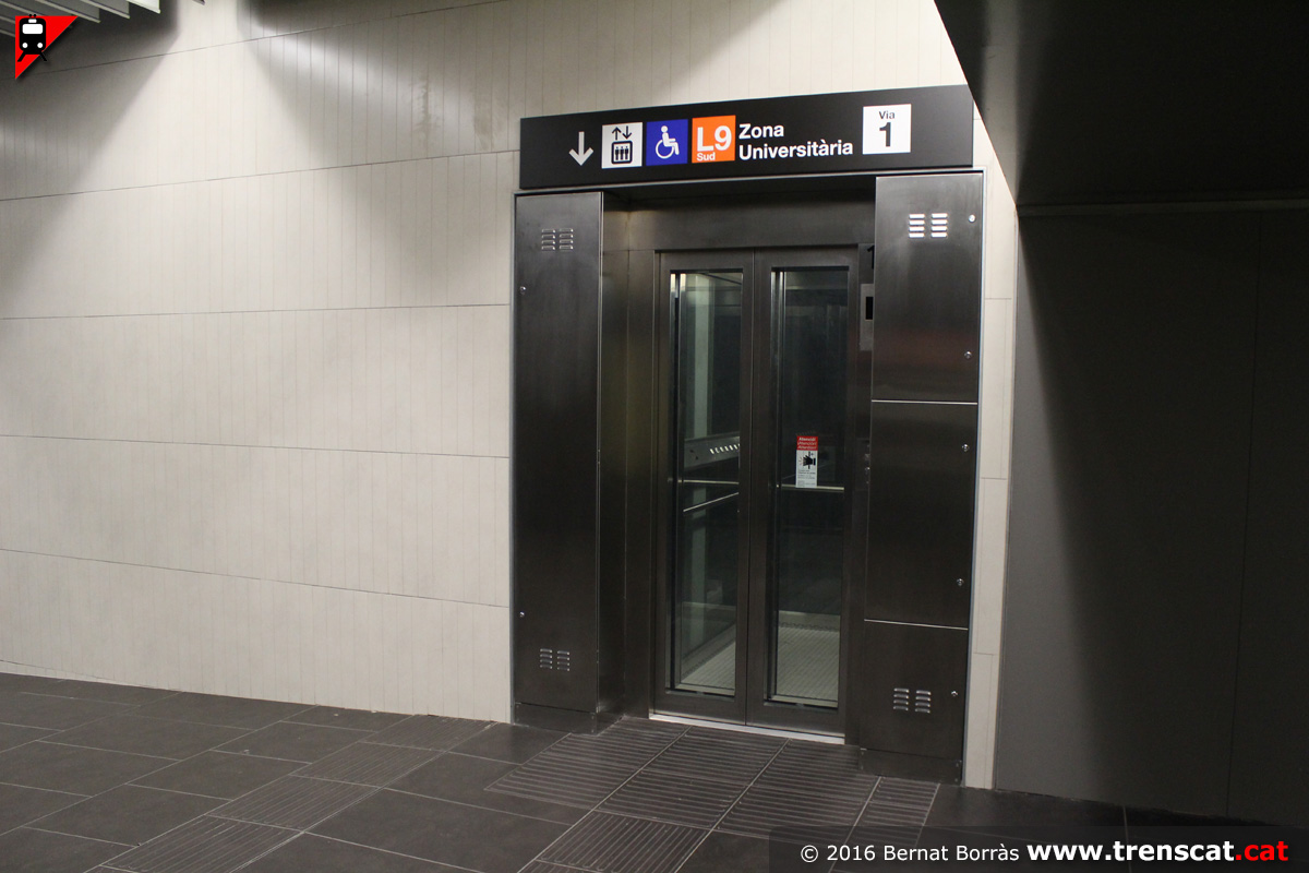 Ascensor del vestíbul a l'andana de la via 1 de les Moreres (febrer