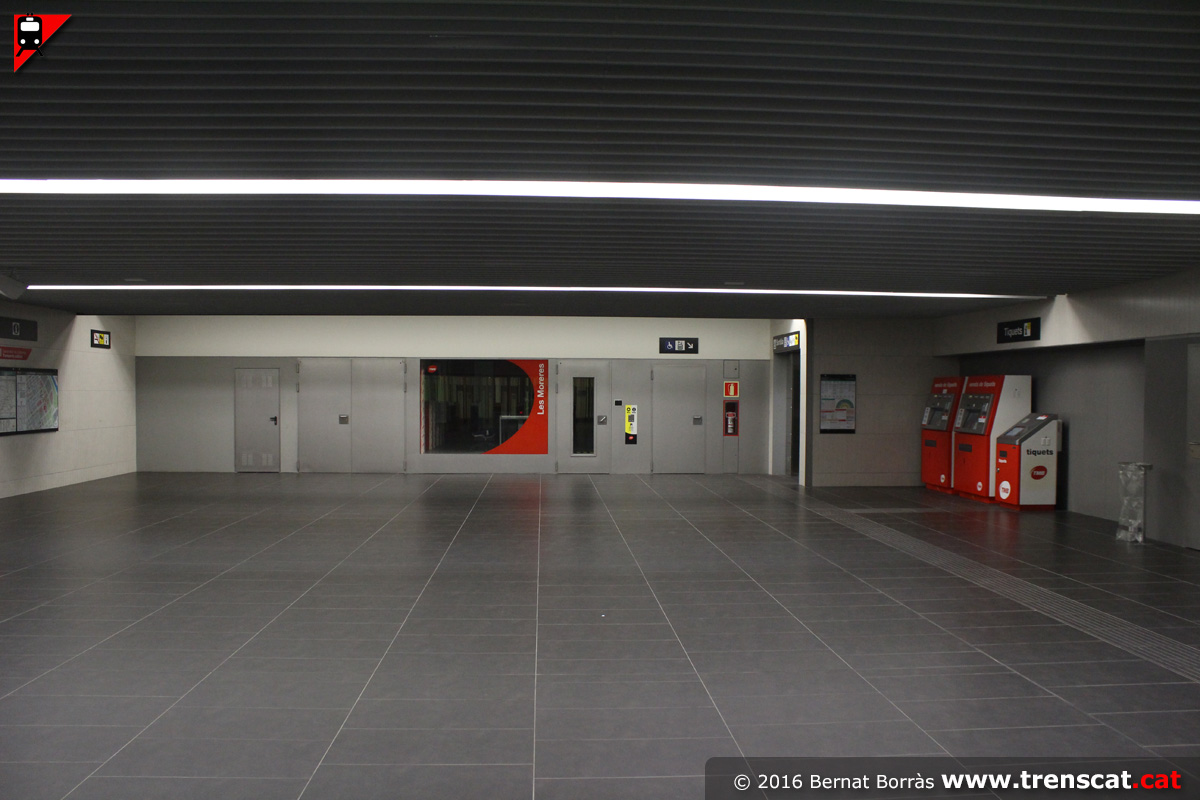 Vestíbul de l'estació de les Moreres, amb l'ascensor i les màquines de
