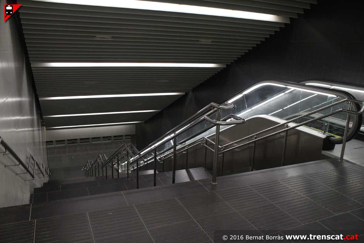 Una escala mecànica i escales fixes enllacen el vestíbul i el carrer (febrer 2016) |