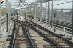 Tram de canvis d'agulles a la sortida sud d'Ecoparc cap a ZAL | Riu Vell (desembre 2021) |