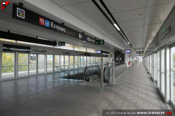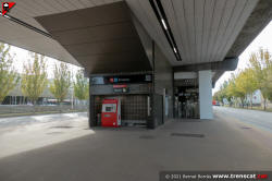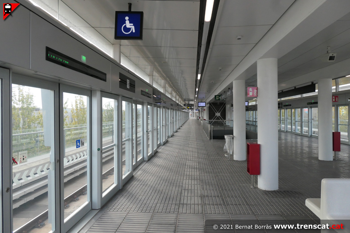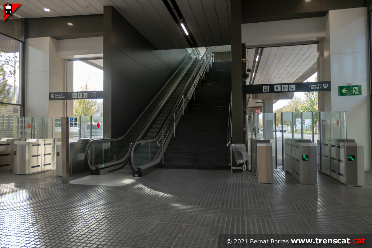 Vista general del vestíbul de l'estació Ecoparc, des del costat sud (desembre 2021) |