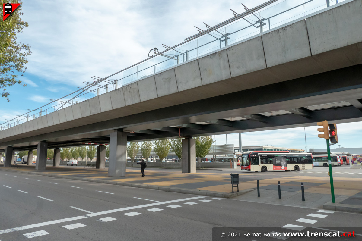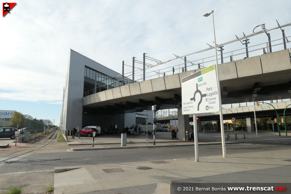Vista general de l'estació Ecoparc des del carrer A, calçada costat mar (desembre 2021) |