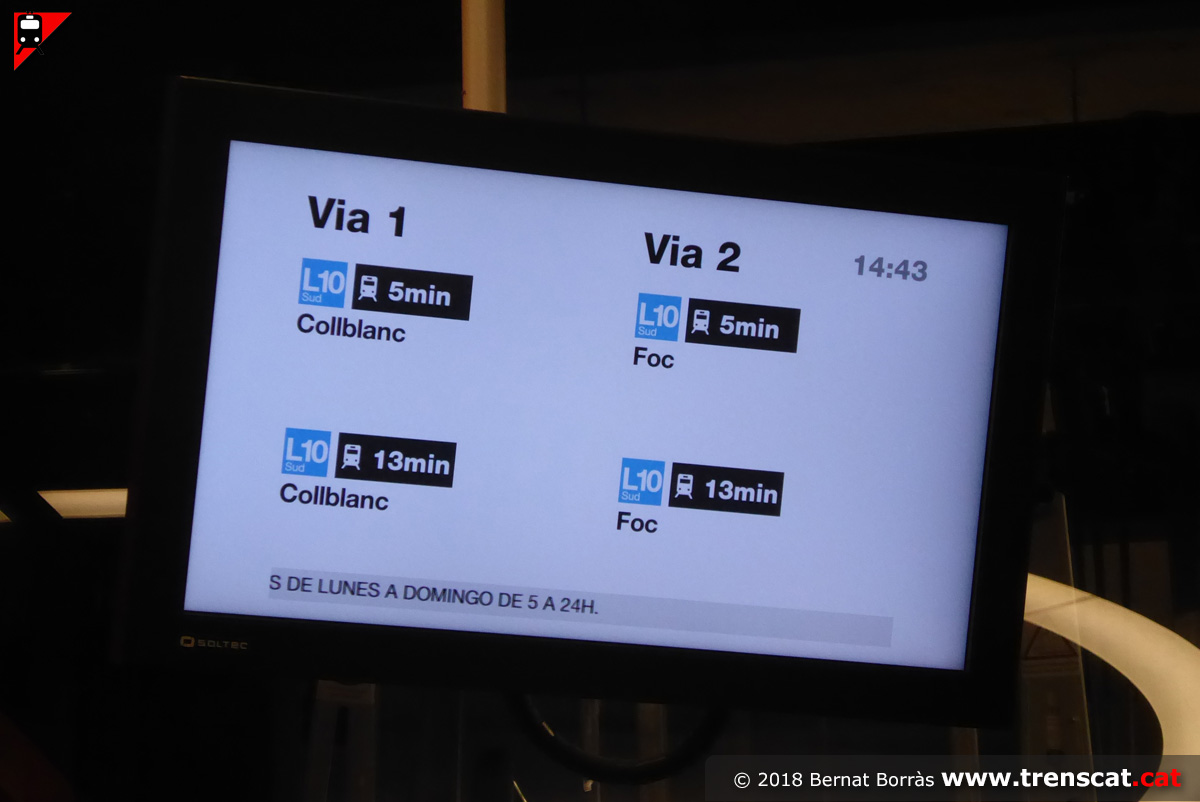 Monitors informant dels propers trens de la L10 sud (setembre 2018) |