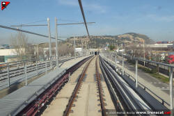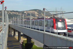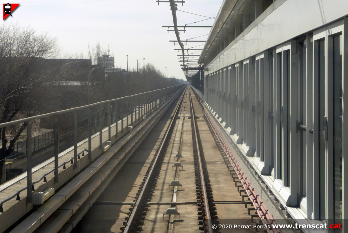 El metro circulant pel viaducte fins a l'estació de Zona Franca on