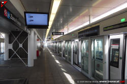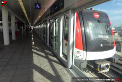 A l'estació de metro de Zona Franca es pot veure el tren estacionat des