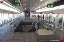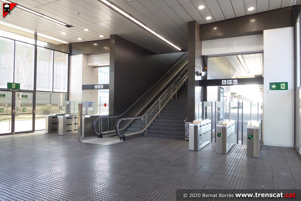 l’estació. Del vestíbul en surten dos grups d’escales fixes que