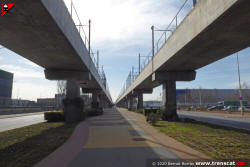 El recorregut s'enfila cap al viaducte sobre el carrer A, que es