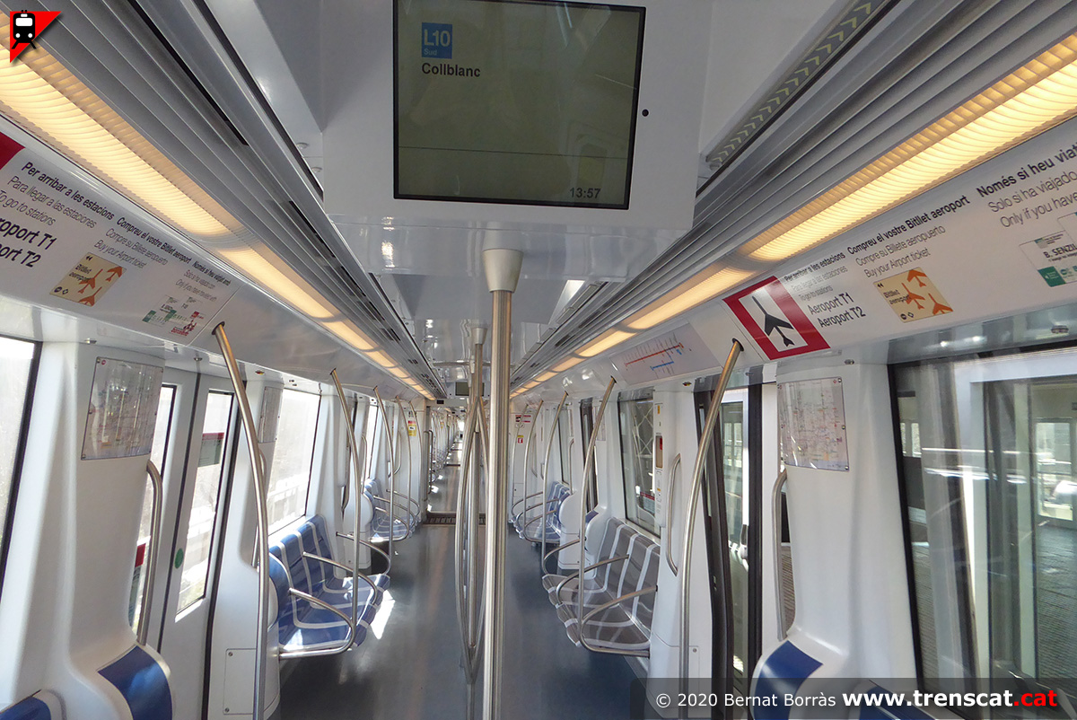 Interior d'un tren de la sèrie 9000 a Zona Franca, a punt de sortir cap