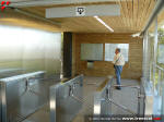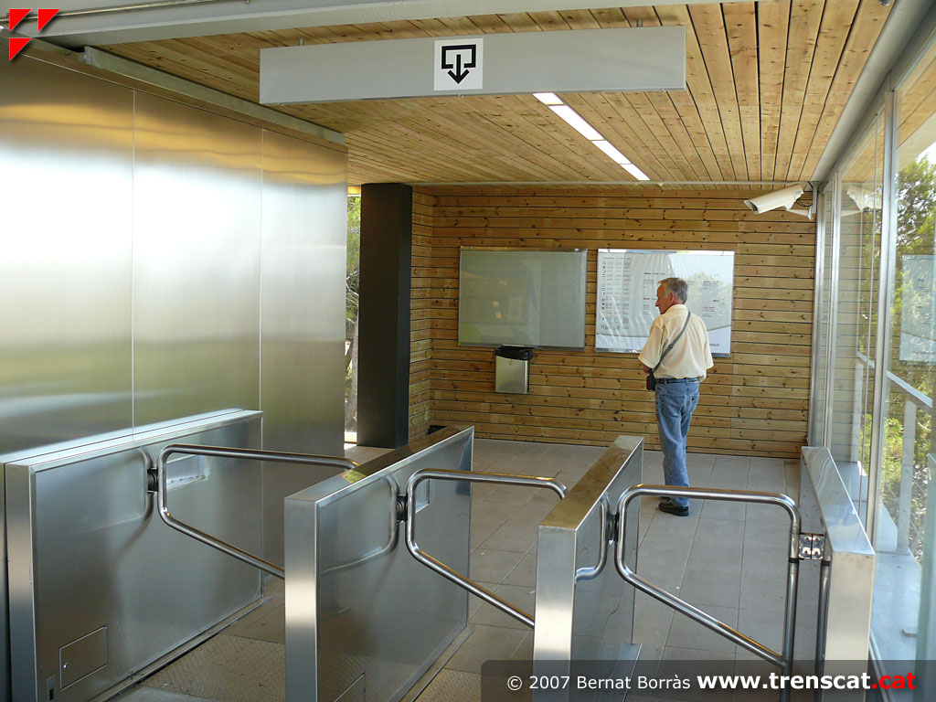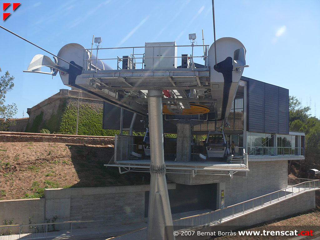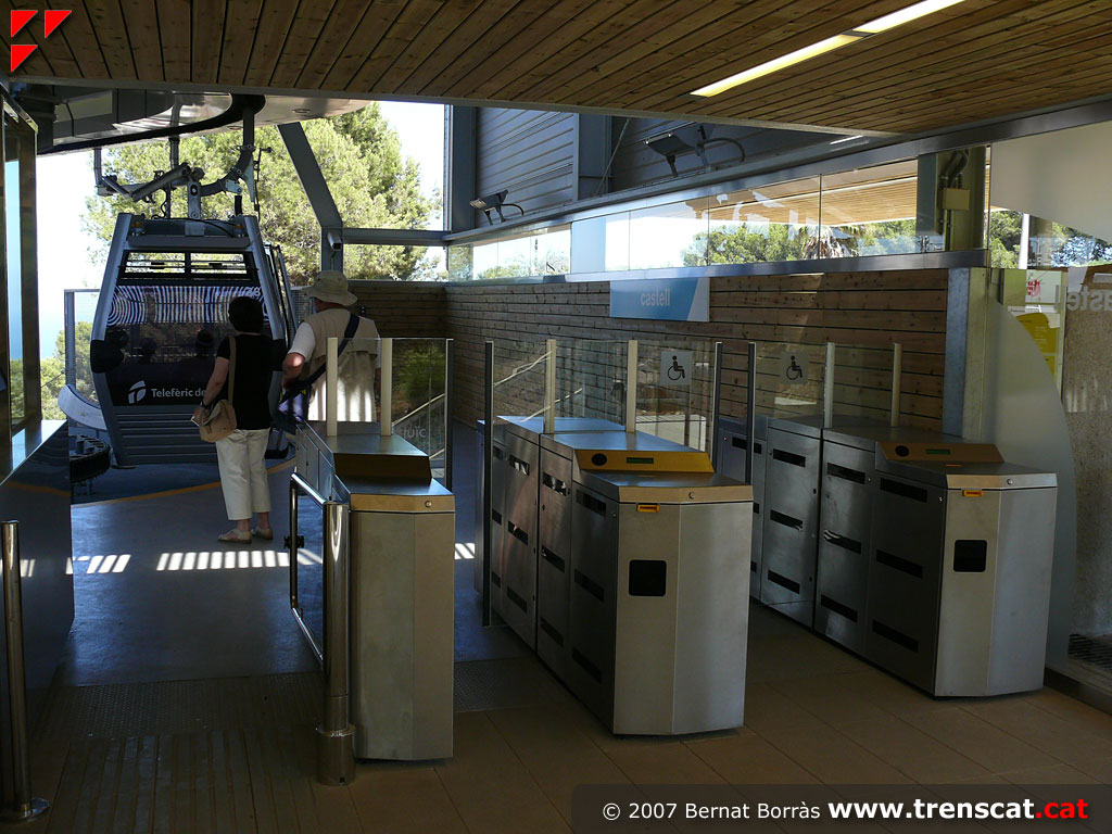 L'estació Castell suposa el punt culminant de l'ascens a la muntanya de Montjuïc des de la ciutat. Es troba a la part exterior de la muralla del castell. L'estació té una andana per a l’embarcament i desembarcament de passatgers de manera automtatitzada. Compta amb venda automàtica i manual de bitllets i barreres tarifàries de control d'accés.