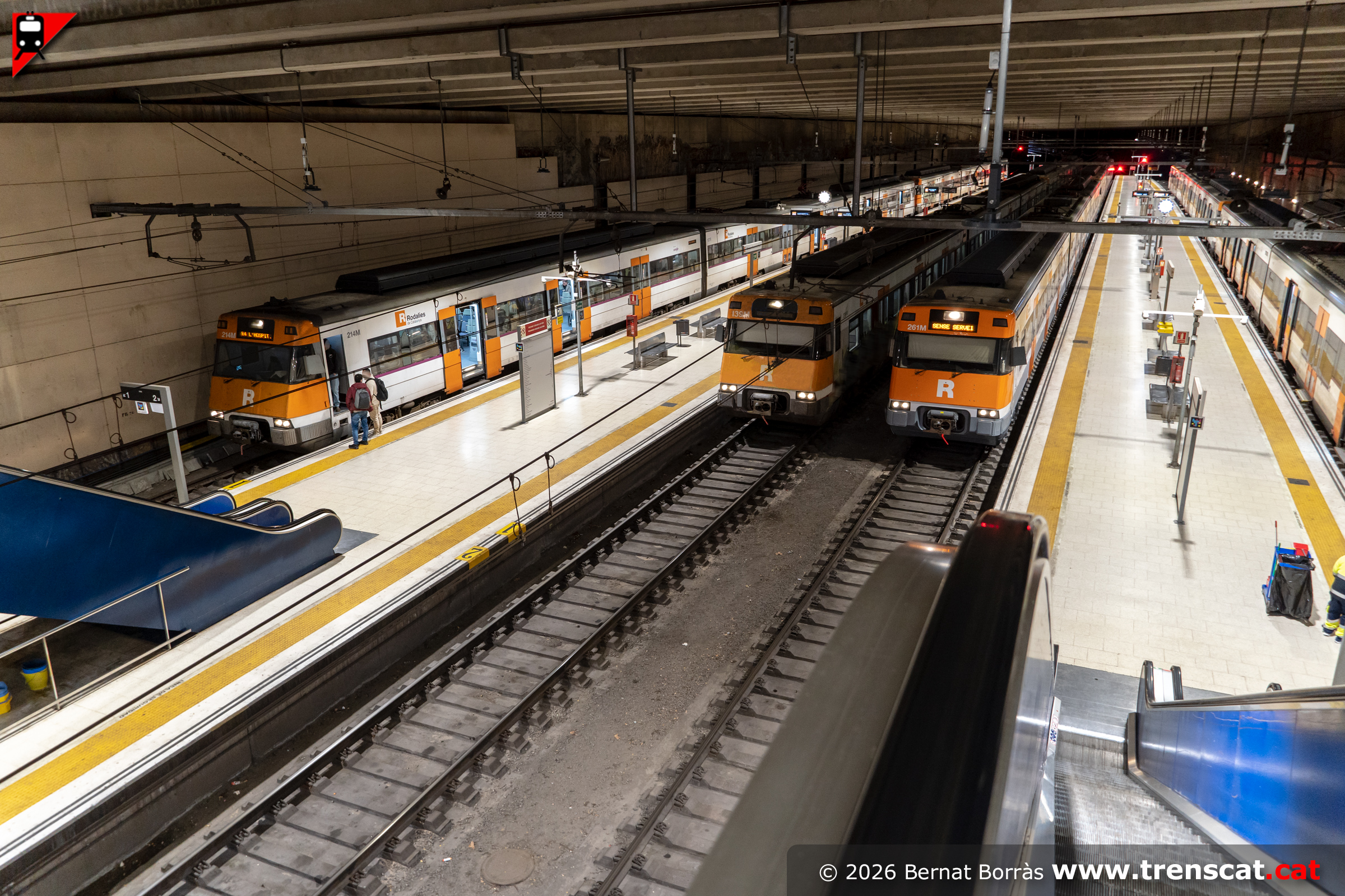 Una foto destacada que no ens agrada gaire haver de posar. Després de l'accident a la LAV a Adamuz (Córdoba) el 18 de gener i del xoc d'una 447 contra un mur a Gelida el 20 de gener, amb els fatídics resultats que sabem, la xarxa ferroviària de Catalunya de via ampla gestionada per ADIF va entrar en una crisi sense precedents. Es demanava circular per una xarxa amb garanties de seguretat, que no es podia garantir després d'anys de desinversió accentuat a més pel canvi climàtic. La xarxa per a viatgers i mercaderies es tornava a posar en servei el 23 de gener però es va tornar a parar per noves incidències, reprenent posteriorment el servei de manera parcial el 26 de gener. No obstant, diverses avaries acabarien suposant una represa sense normalitat, com per exemple la R4 a Terrassa Estació del Nord de la foto, on amb totes les 5 vies ocupades un tren sortiria cap a l'Hospitalet després de no sortir-ne cap des de feia ja unes hores. Cap a Manresa i Cervera calia utilitzar un autobús substitutori. Esperem que almenys aquesta crisi serveixi realment per revertir totalment la situació i que tinguem la xarxa ferroviària que ens cal! Foto: Bernat Borràs (26.01.2026)