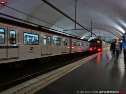 Tren de la línia L1 entrant a Espanya pel costat Hostafrancs (gener