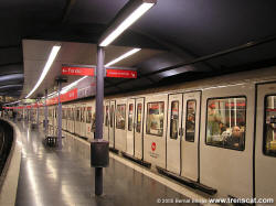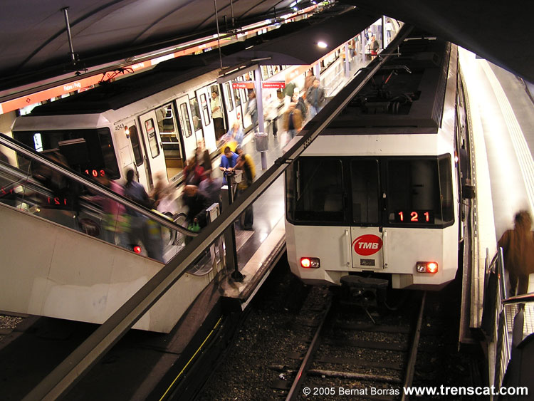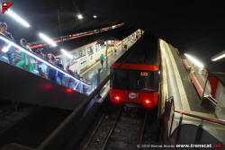 Encreuament d'unitats 4000 del metro de la línia L1 a Fabra i Puig