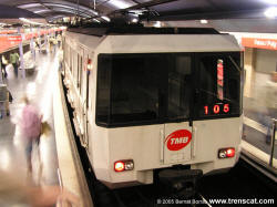 El comboi de metro de la línia L1 a punt per seguir de Fabra i Puig cap