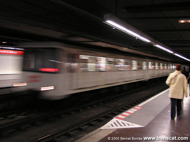 Metro finalitzant el seu recorregut a l'estació hospitalenca (abril
