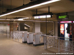 El vestíbul del costat Clot, amb els torniquets i portes de control