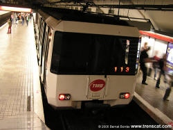 Un metro de la L1 surt cap a Hospital de Bellvitge (juliol 2010) |