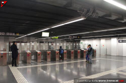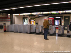 Vestíbul de l'estació amb les barreres tarifàries de control d'accés; el