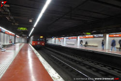 Unitat 4000 del metro de TMB entrant a Torrassa de la línia L1 procedent