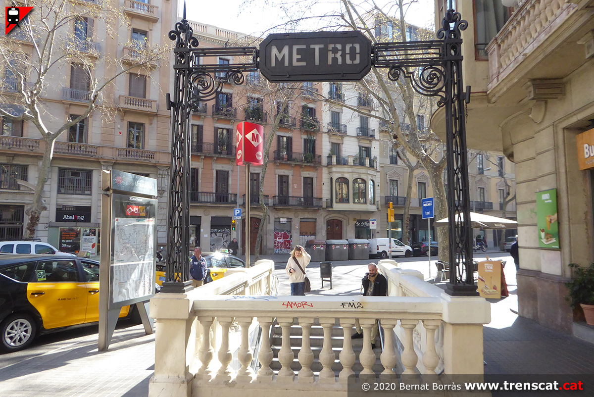 i el rètol de Metro en ferro forjat. Aquest vestíbul disposa de