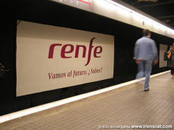 Curiós anunci a l'estació. Just per darrera la paret passen precisament
