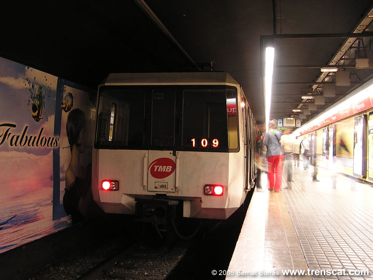 Metro estacionat a la via 2 d'Urquinaona (abril 2005) |
